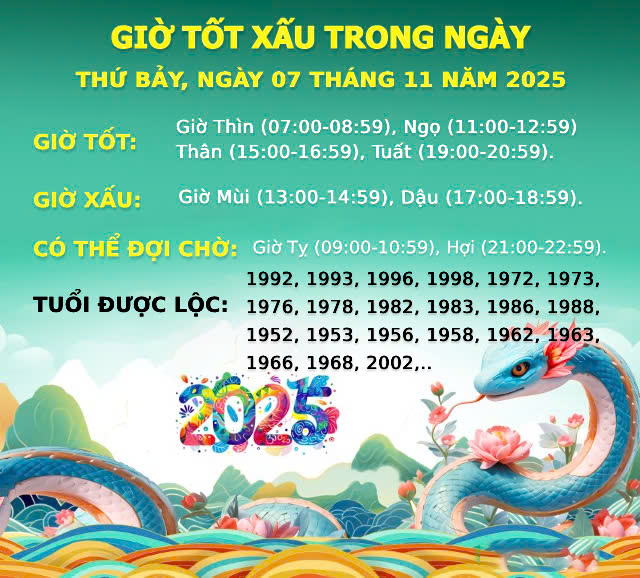 Thứ Bảy, ngày 08/11/2025 tức 19/09 âm lịch năm Ất Tỵ